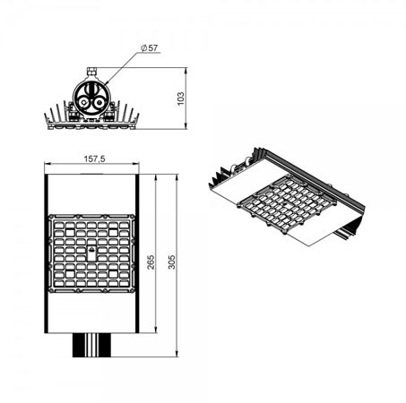 Габаритные размеры светильника, мм 305 х 158 х 103